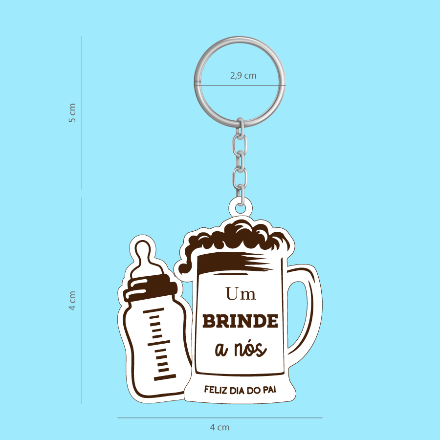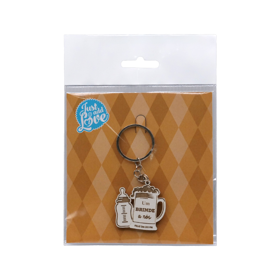 Um brinde aos momentos partilhados, às noites bem dormidas… e às que não foram! Este porta-chaves especial traz a frase “Um Brinde a Nós”, acompanhada pelo desenho de uma caneca de cerveja e um biberão de leite, a combinação perfeita que representa pai e filho(a). Um símbolo divertido e cheio de ternura da ligação única entre os dois. Ideal para acompanhar o pai no dia a dia, seja nas chaves de casa, do carro ou do trabalho. Um presente original para celebrar o Dia do Pai, repleto de significado, amor e cumplicidade. Porque não importa a bebida… o que importa é o brinde ser juntos! Material: MDF