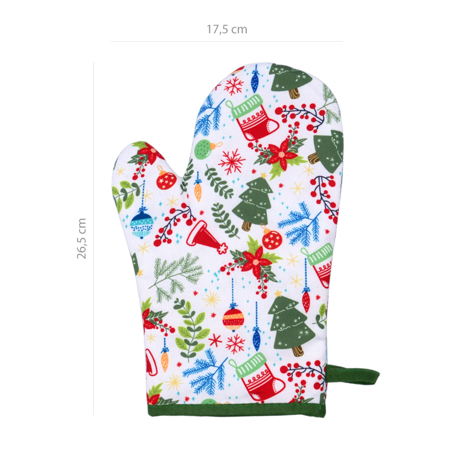 Dê um toque mágico à sua cozinha neste Natal! A Luva de Cozinha Natalina com Base de Silicone combina proteção térmica, conforto e um design encantador com motivos festivos que trazem o verdadeiro espírito natalício para cada receita. - Resistente ao calor até 250 °C; - Ideal para retirar bolos do forno em total segurança; - Base de silicone antiderrapante, garante firmeza ao segurar tabuleiros, tachos e formas quentes; Perfeito para oferecer! Um presente útil, bonito e cheio de espírito natalício para familiares e amigos que adoram cozinhar. Transforme cada receita numa celebração e surpreenda quem mais gosta com um presente prático e cheio de charme! Luva de Cozinha Natalina, o toque quente e acolhedor que o Natal merece.