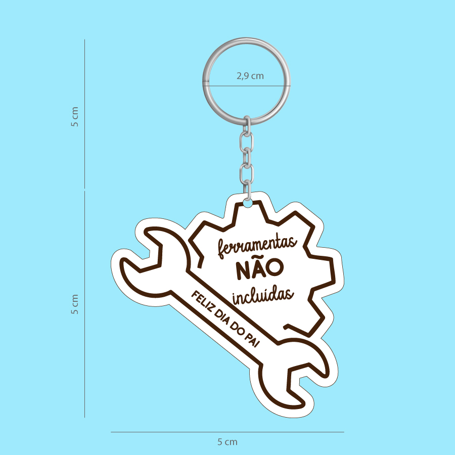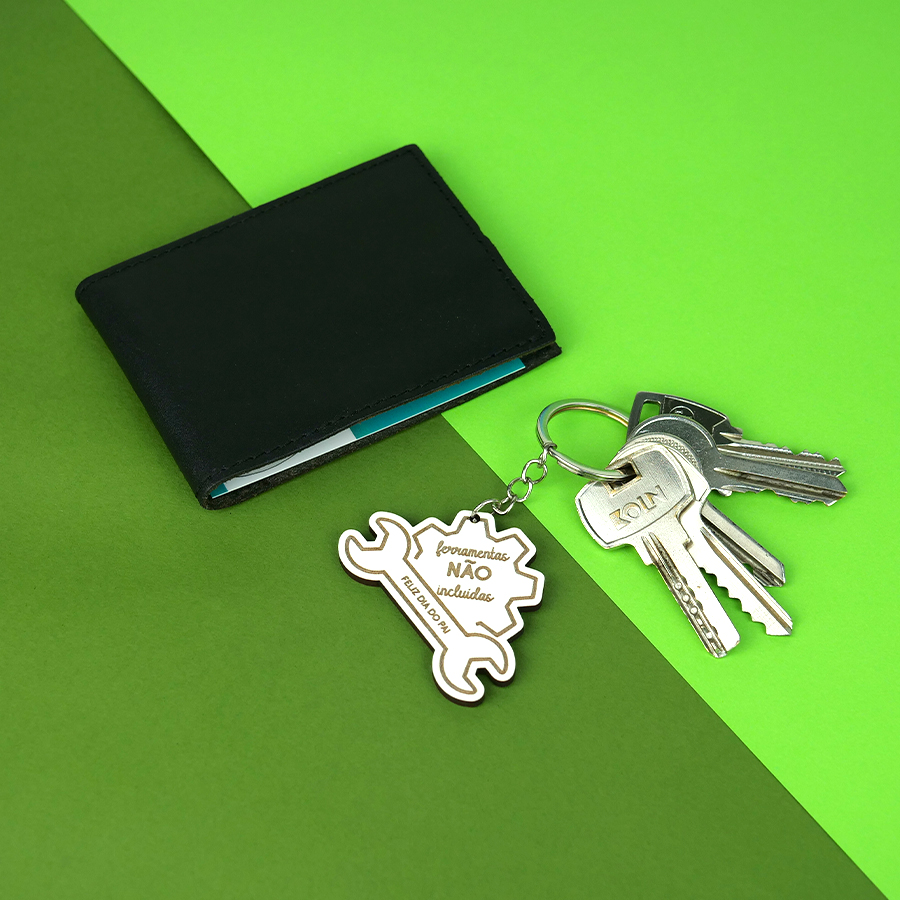 Porque o pai é o verdadeiro mestre das ferramentas… mas este porta-chaves já vem pronto a usar! O nosso porta-chaves para o Dia do Pai, com a divertida frase “Ferramentas não incluídas”, é o presente perfeito para aquele pai habilidoso que resolve tudo ou pelo menos tenta! É uma lembrança simples mas cheia de significado, ideal para acompanhar o pai todos os dias, seja nas chaves de casa, do carro ou até da oficina. Um presente original, útil e com um toque de humor que vai arrancar um sorriso no Dia do Pai. Material: MDF