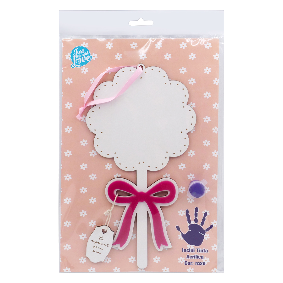 Decorative flower to hang, which includes a jar of paint for little ones to leave the mark of their hand. A piece full of meaning and tenderness, perfect for capturing a unique moment in a creative way. A charming keepsake that will stay in the heart forever, with a tag saying “És especial para mim”. Package includes 1 unit. Material: MDF and acrylic.