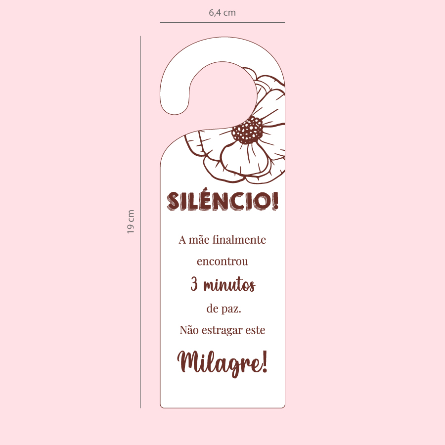 Transforme qualquer porta num verdadeiro aviso de sobrevivência com este letreiro divertido e cheio de personalidade. Perfeito para mães que sabem valorizar (e proteger!) aqueles raros e preciosos minutos de silêncio, este aviso é ao mesmo tempo prático e cheio de humor. Com a mensagem “Silêncio! A mãe finalmente encontrou 3 minutos de paz. Não estragar este milagre.”, é impossível não sorrir e, quem sabe, até respeitar o momento. Ideal para colocar no quarto, escritório ou qualquer espaço onde seja necessário garantir uma pausa sagrada. Uma peça original que também funciona como presente criativo para mães. Material: MDF
