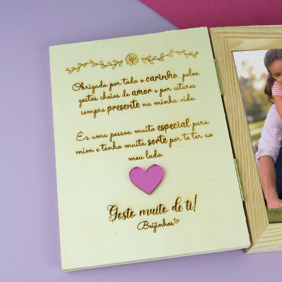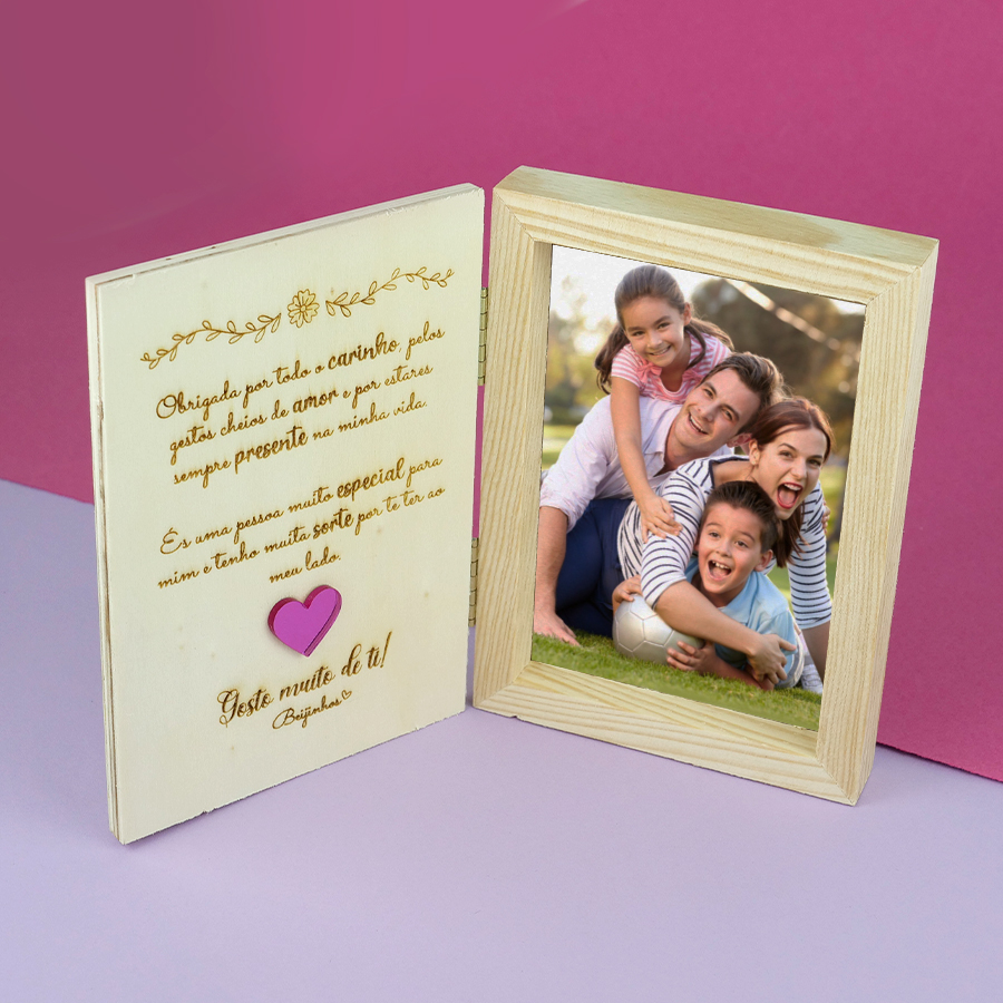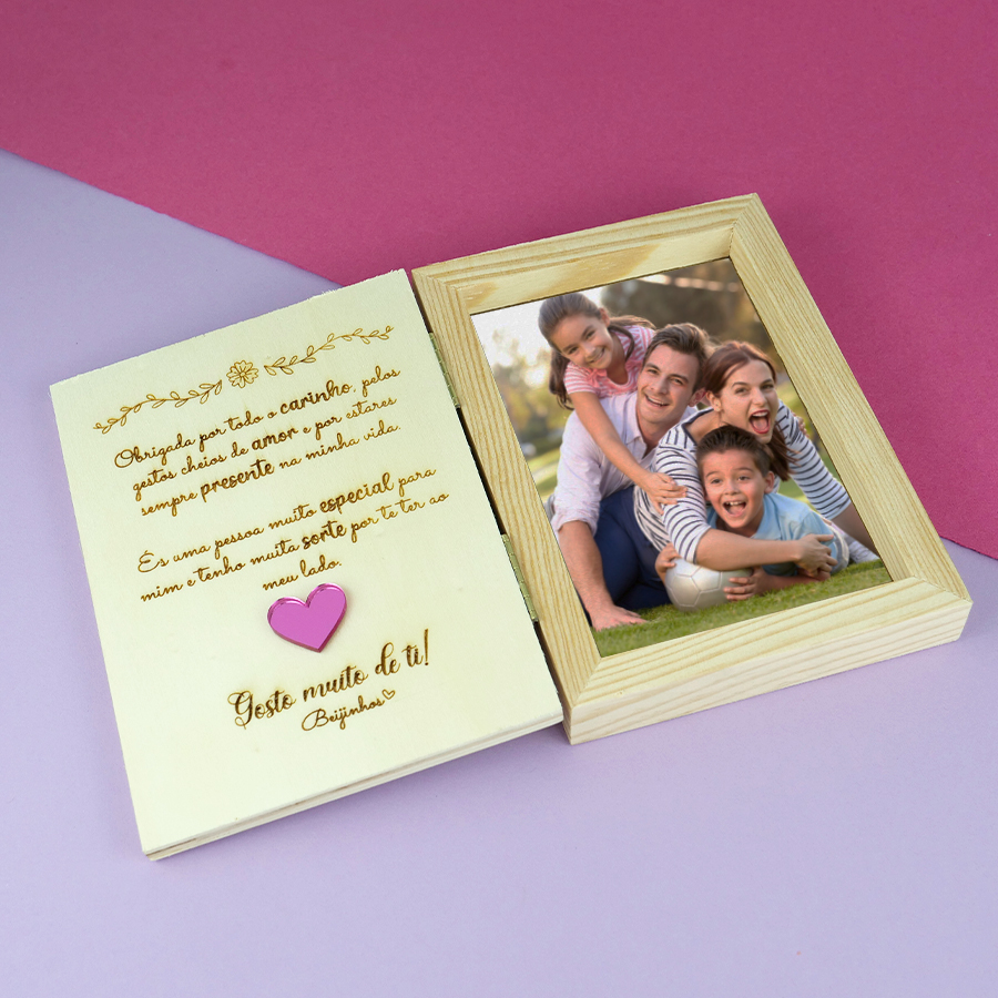 Transforma os momentos mais especiais em recordações que duram para sempre. Esta moldura em formato de livro permite colocar a tua fotografia favorita e guardar memórias cheias de carinho. Um presente perfeito para oferecer a alguém querido ou para celebrar momentos inesquecíveis. Porque as melhores memórias merecem um lugar especial. Material: MDF