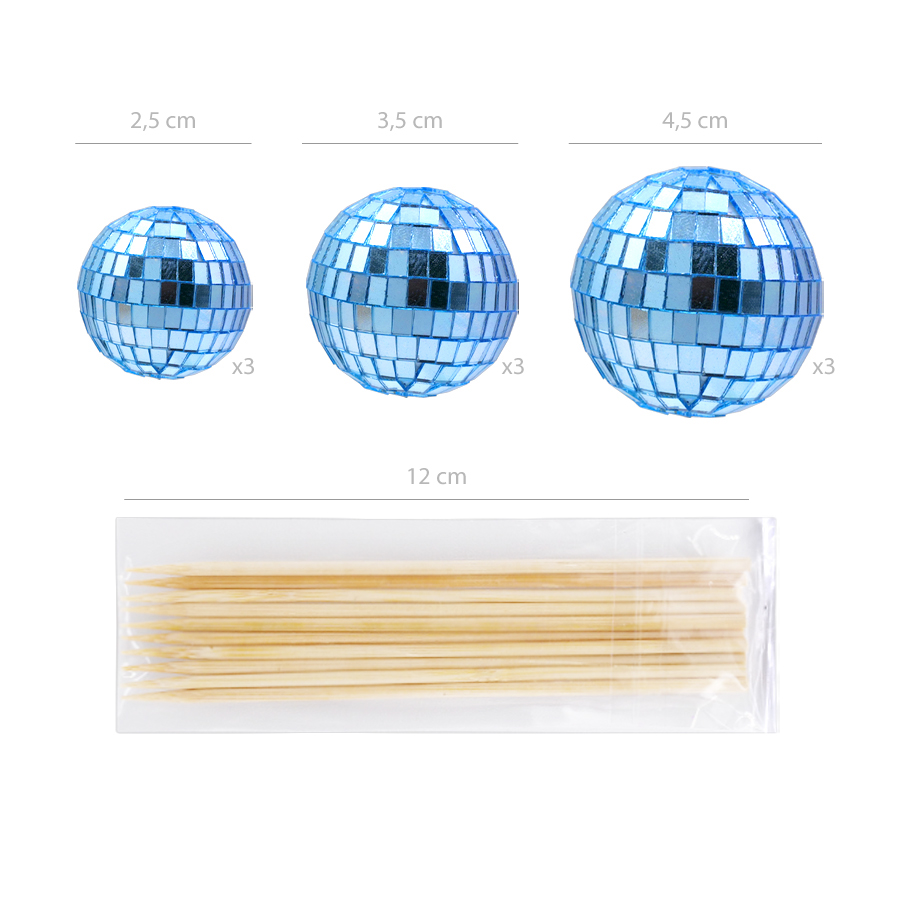 Ensemble de 9 pièces de différentes tailles. Nos sphères sont idéales pour la décoration de vos gâteaux et événements. Parfaites pour ceux qui souhaitent ajouter une touche élégante et moderne à leurs créations. Attention: Produit non comestible. Usage décoratif uniquement. Doit être retiré avant la consommation. Matériaux: Polystyrène et fil de fer.