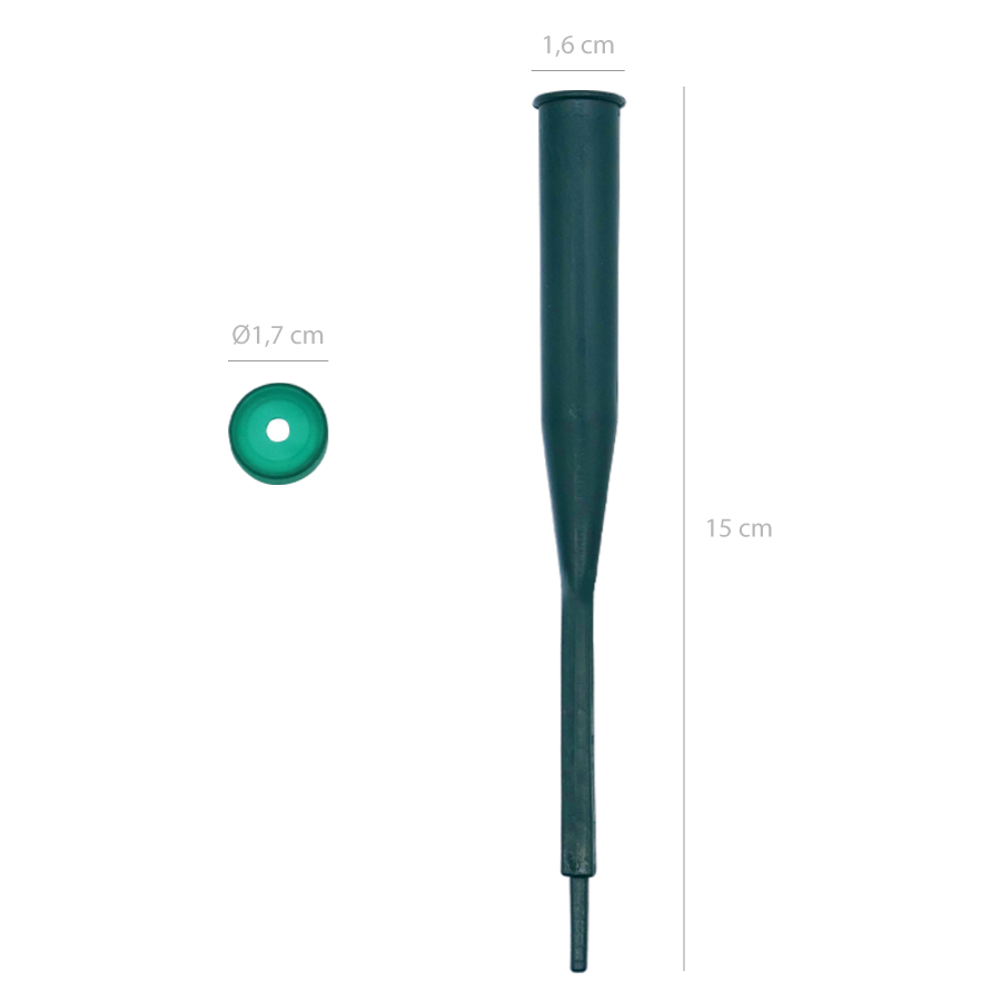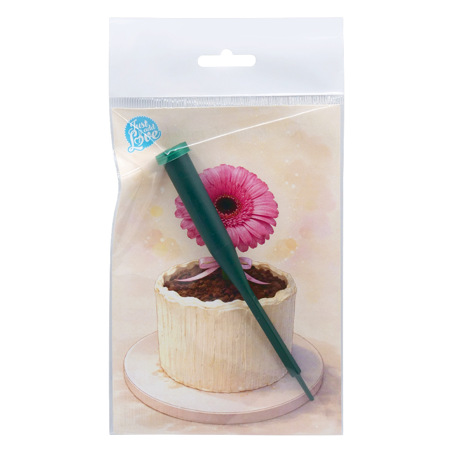 Tube en plastique pour l’insertion de fleurs dans les gâteaux. Idéal pour soutenir les fleurs naturelles ou artificielles, en évitant le contact direct des tiges avec le gâteau. Peut être rempli d’eau, ce qui aide à garder les fleurs fraîches plus longtemps et à éviter qu’elles ne fanent. Discret et fonctionnel, il permet de maintenir les fleurs bien stables et correctement positionnées, améliorant ainsi la finition finale de la décoration. Matériau: Plastique Emballage avec 1 unité.