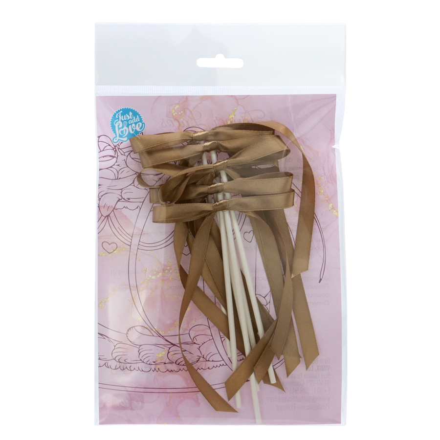 Topper avec de délicats nœuds en satin, idéal pour décorer gâteaux, cupcakes et desserts avec une touche élégante et romantique. Parfait pour suivre la tendance des gâteaux vintage, en ajoutant de la couleur et de l’élégance à vos créations. Dimensions approximatives: 9 x 18 cm Emballage avec 6 unités.