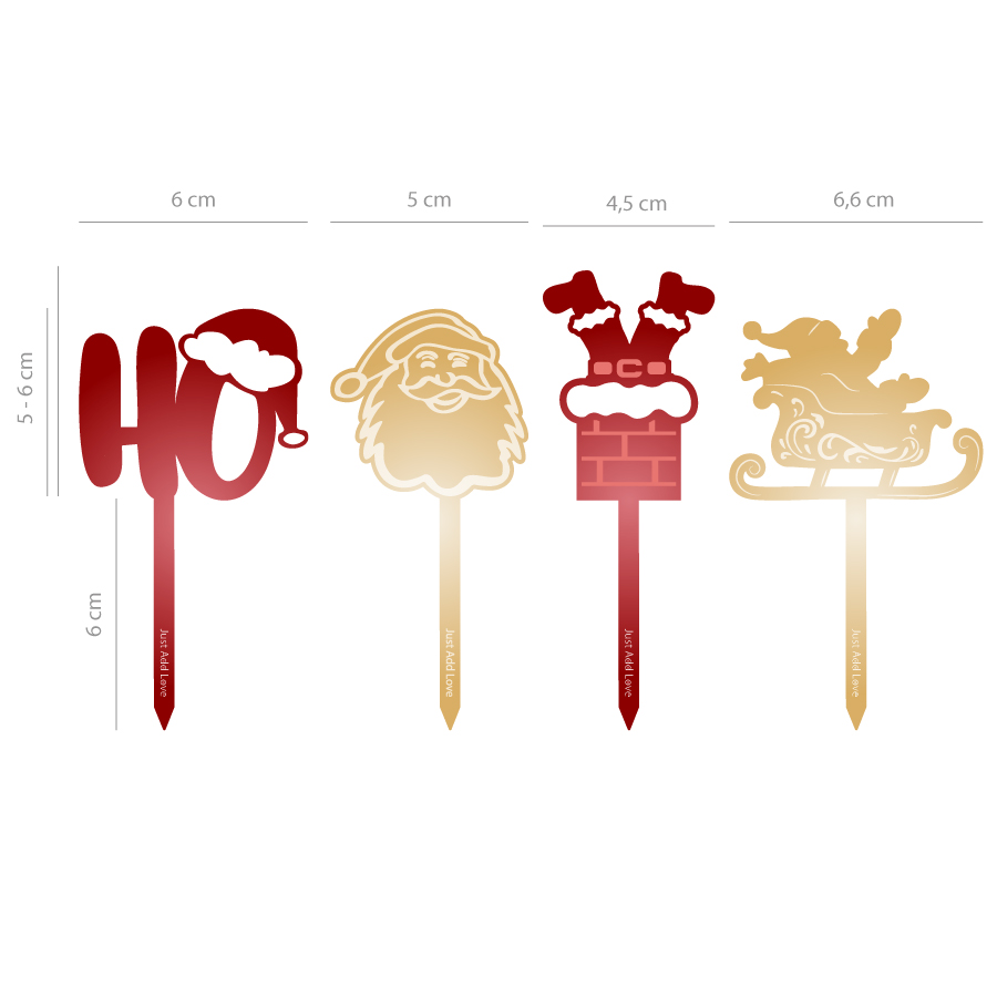 Um toque mágico e festivo para o seu Natal! Os nossos toppers de Natal são perfeitos para decorar bolos, cupcakes, sobremesas ou mesas temáticas, enchendo o ambiente com o encanto e a alegria desta época tão especial. Com desenhos natalinos encantadores, transformam qualquer detalhe num momento mágico, cheio de brilho e espírito natalino. São laváveis e reutilizáveis. Fabricados em acrílico com 3mm de espessura. Embalagem com 4 unidade.